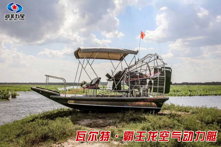 河北五星“霸王龍”水陸兩棲空氣動力艇是一種運用空氣動力學、采用航空發動機和空氣螺旋槳推動,通過置于船體上部的大功率內燃機帶動碳纖維螺旋槳產生空氣動力的多地形交通工具。所搭載的航空發動機動力系統強勁,功率可達300馬力以上,螺旋槳推力可達500公斤以上,操縱機動靈活,靜水巡航速度可達40km/h,可以高時速可達70km--120km/h。