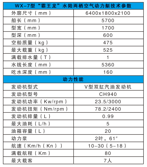 “霸王龍”水陸兩棲空氣動力艇結構及技術參數: